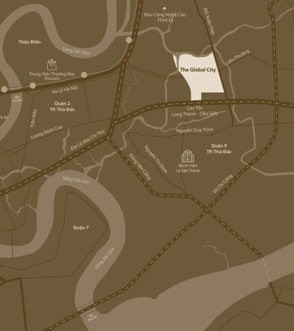 Nằm ngay mặt tiền đường Đỗ Xuân Hợp – Liên Phường, dễ dàng kết nối về Quận 1, Thảo Điền, Phú Mỹ Hưng và các khu trung tâm kinh tế lớn. Được định vị trở thành “Downtown City” mới của TP.HCM, The Global City không chỉ là nơi an cư mà còn là trung tâm thương mại – tài chính – giải trí mang tầm khu vực, góp phần tái định hình diện mạo đô thị phía Đông thành phố.